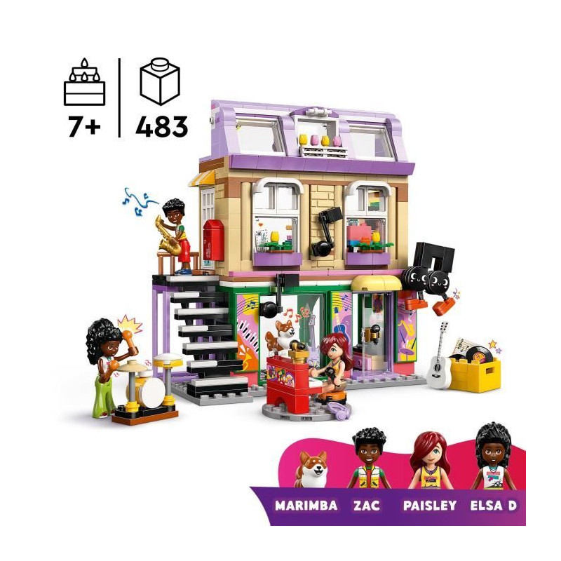 Découvrez le set LEGO Friends 42653 avec un magasin de musique et un appartement. Inclut 3 mini-poupées, un corgi et de nombreux accessoires musicaux. Parfait pour stimuler la créativité des enfants des 7 ans.