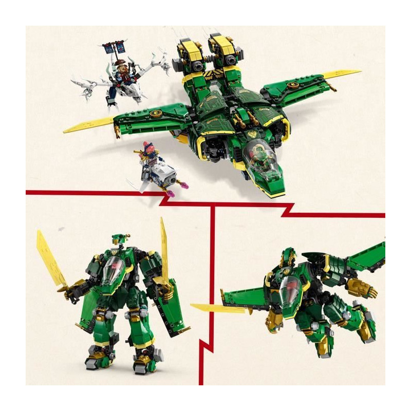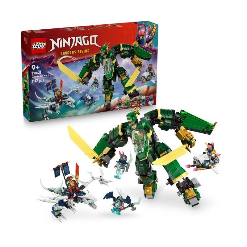 Découvrez l'action palpitante avec le set LEGO NINJAGO 71845. Ce jeu de construction inclut un robot transformable en jet, un dragon et 5 minifigurines, offrant des heures de créativité et d'aventures pour les enfants des 9 ans.