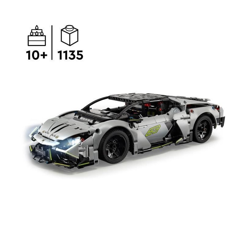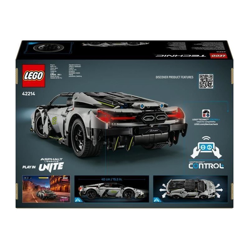 Découvrez le kit d'ingénierie LEGO® Technic 42214, une supercar Lamborghini Revuelto télécommandée. Avec 1135 pieces, ce jouet STEM offre une expérience de construction immersive pour les enfants des 10 ans. Contrôlez la voiture via l'application CONTROL+, explorez ses fonctionnalités et initiez-vous a l'ingénierie tout en vous amusant.