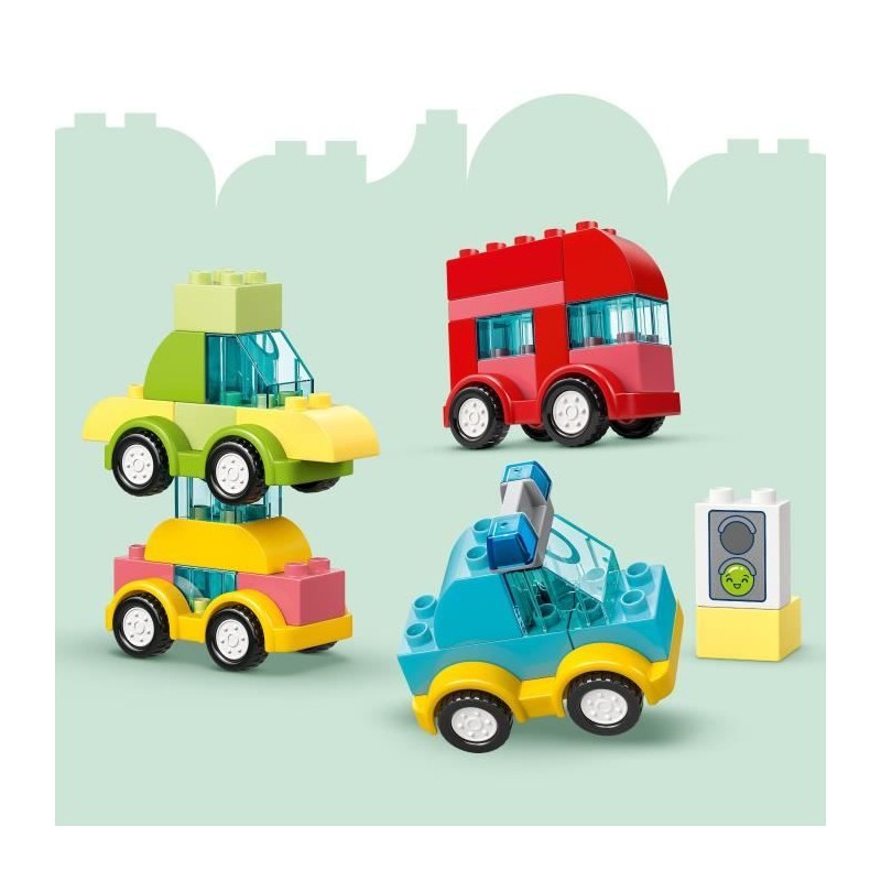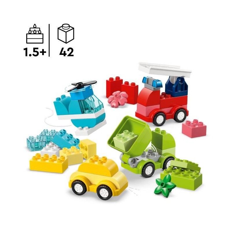 Ce set LEGO® DUPLO® développe la créativité et la motricité fine des plus jeunes, qui construisent et transforment divers véhicules amusants.
