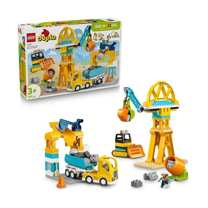 LEGO DUPLO Ma Ville 10476 Le Chantier et les Véhicules de Construction 3-en-1 - Jeu Créatif