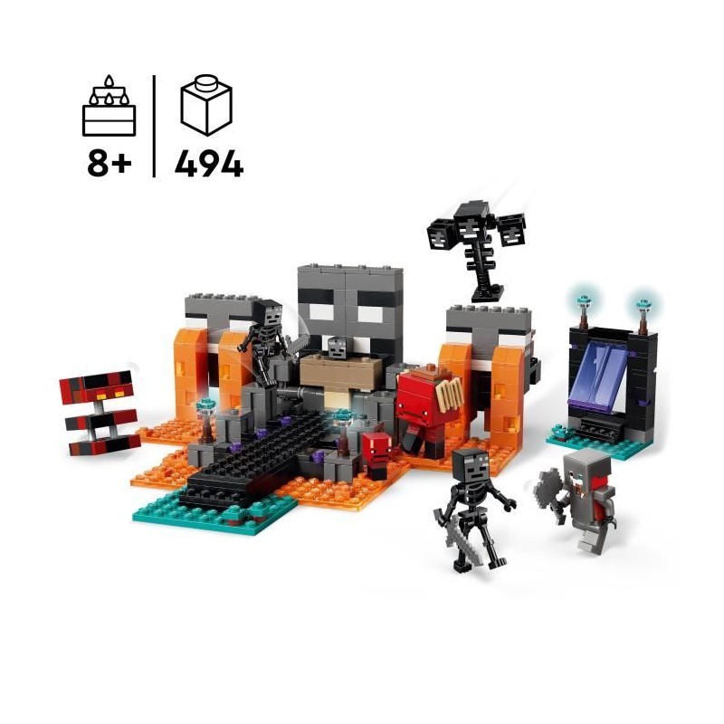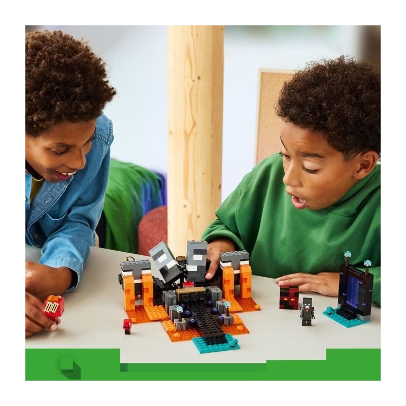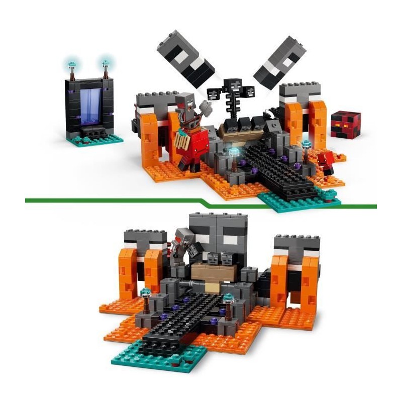 Traversez le portail du Nether pour plonger dans La bataille du Wither, un set de construction LEGO® qui regorge d'action et de personnages Minecraft®.
