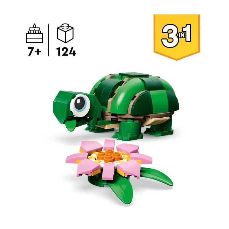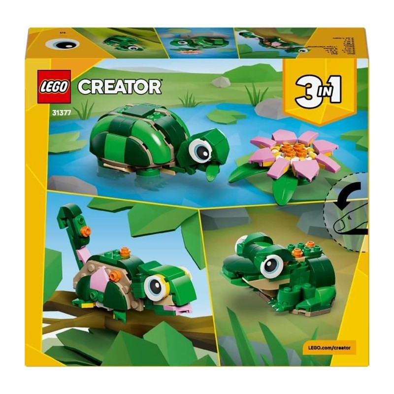 LEGO Creator 3-en-1 31377 La Tortue et la Fleur de Nénuphar - Jouet de Construction 7 ans