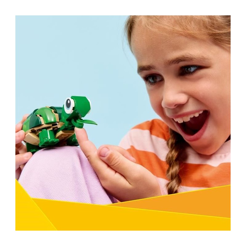 Les fans d'animaux peuvent jouer avec La tortue et la fleur de nénuphar LEGO® Creator 3-en-1, puis les transformer en caméléon ou en grenouille.
