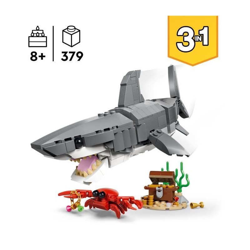 LEGO Creator 3-en-1 31381 Le Redoutable Requin et le Coffre au Trésor - Jouet des 8 ans
