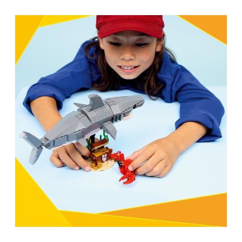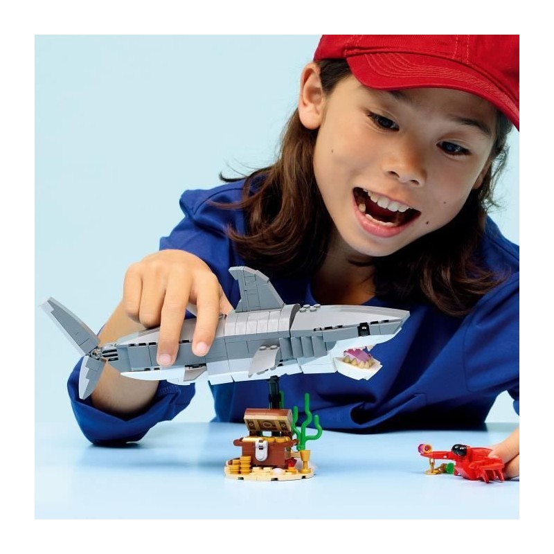Le redoutable requin et le coffre au trésor LEGO® Creator 3-en-1 inspire une infinité d'histoires et peut se transformer en baudroie ou en raie manta.