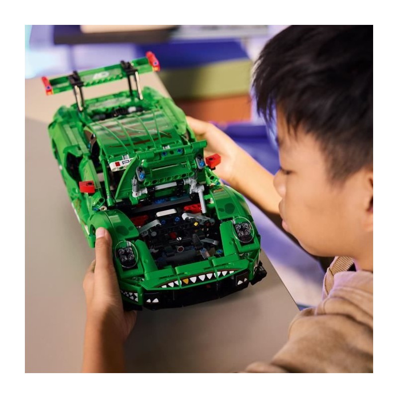 Les enfants peuvent construire leur voiture de course d'endurance au look de dinosaure avec la voiture Porsche 911 GT3 R REXY AO Racing LEGO® Technic.