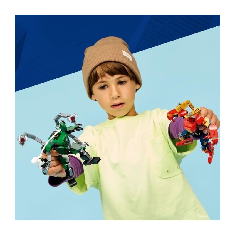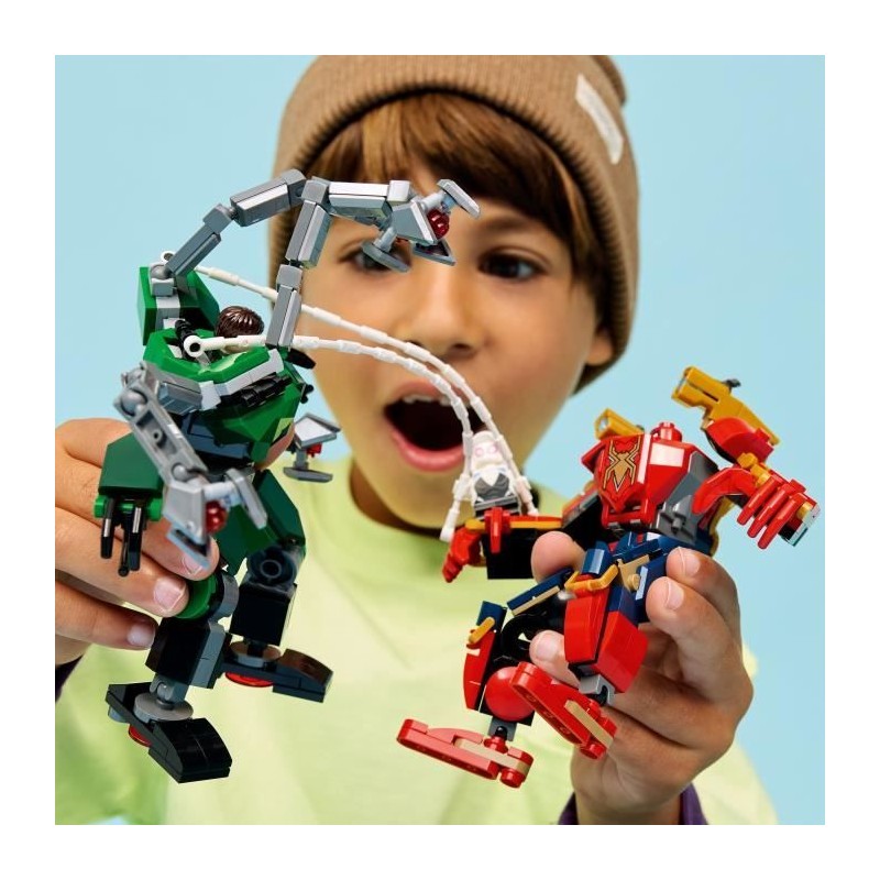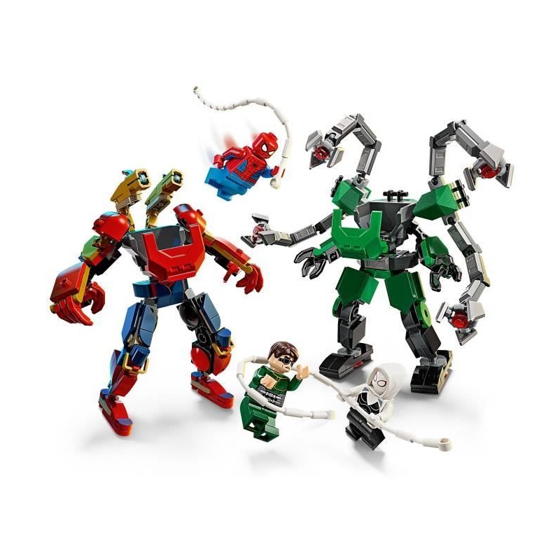 Assistez a un affrontement XXL avec Le combat des robots : Spider-Man contre Docteur Octopus, qui inclut 2 robots articulés et 3 minifigurines.