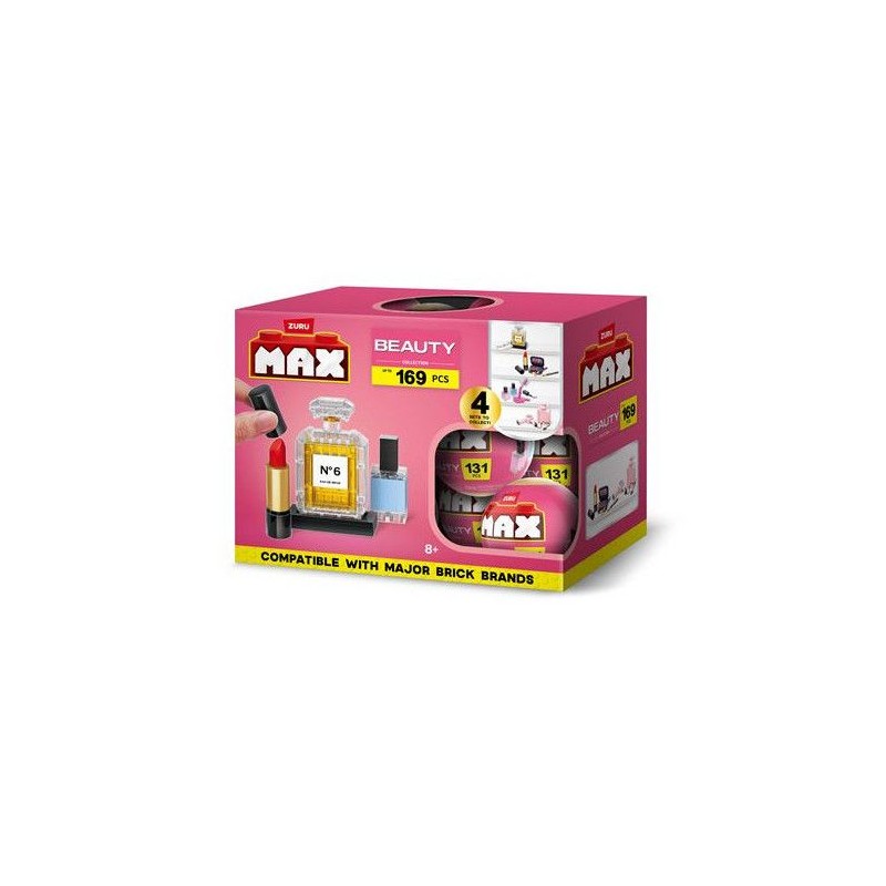 Construis et collectionne tes produits de beauté préférés avec les briques de construction Max Premium comme ta pallette de maquillage et ton rouge a levres, ton set de verni a ongles, ton parfum des tar ou encore ton seche cheveux. 4 a collectionner.