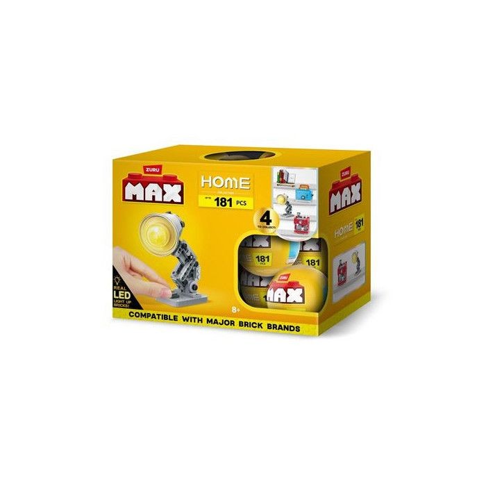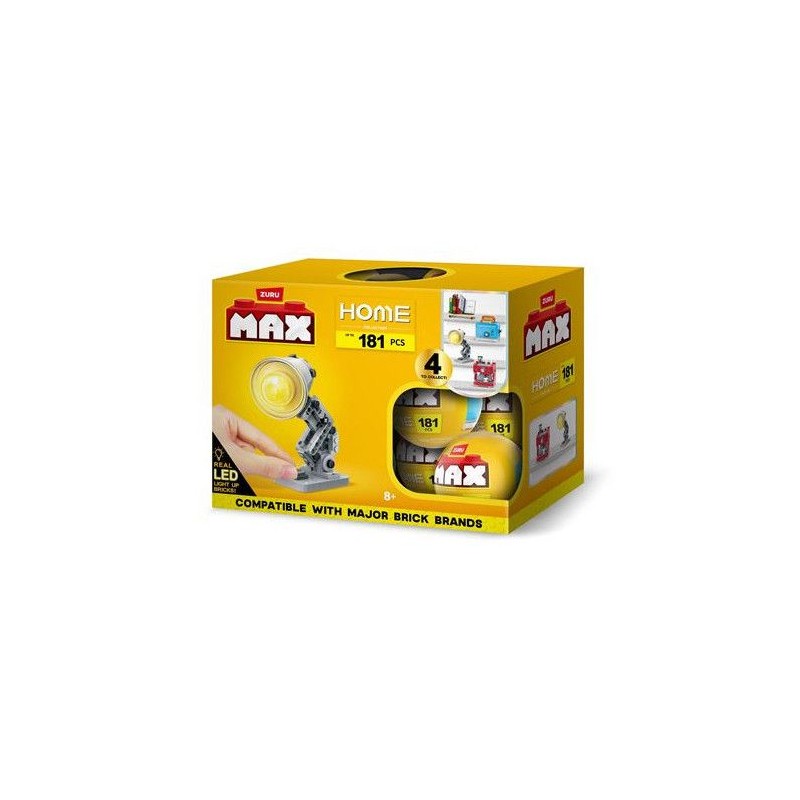 Reproduis et collectionne tes objets de la maison préférés avec les briques de construction Max Premium Home. Construis et collectionne ton grille-paiin, ta machine a café, ton étagere de livres ou encore ta lampe, chaque objet ayant des elements amovibles. Tu peux meme allumer ta lampe ! 1 objet Home a construire par capsule (identifié sur la capsule).