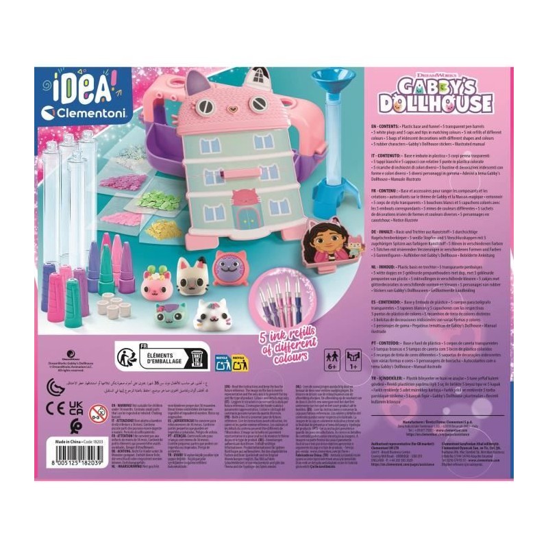 Découvrez le coffret créatif CLEMENTONI pour enfants, permettant de créer et personnaliser 5 stylos colorés a l'effigie de Gabby et la maison magique. Ce kit comprend de nombreux accessoires comme des perles et décorations pour une personnalisation facile et amusante.