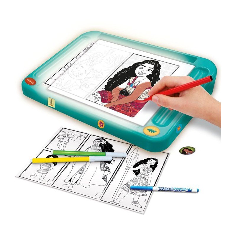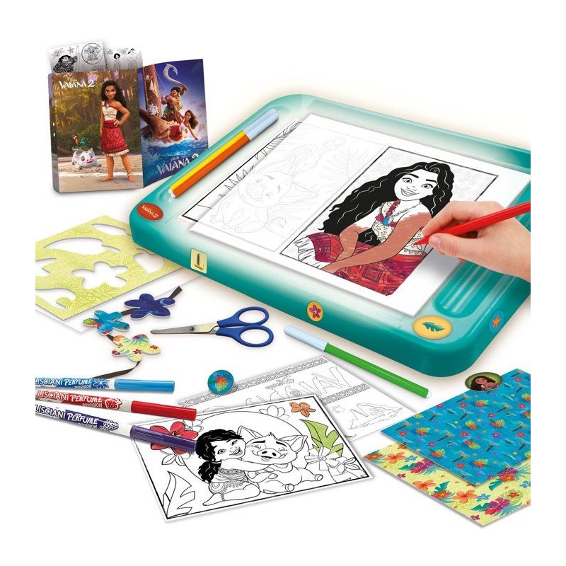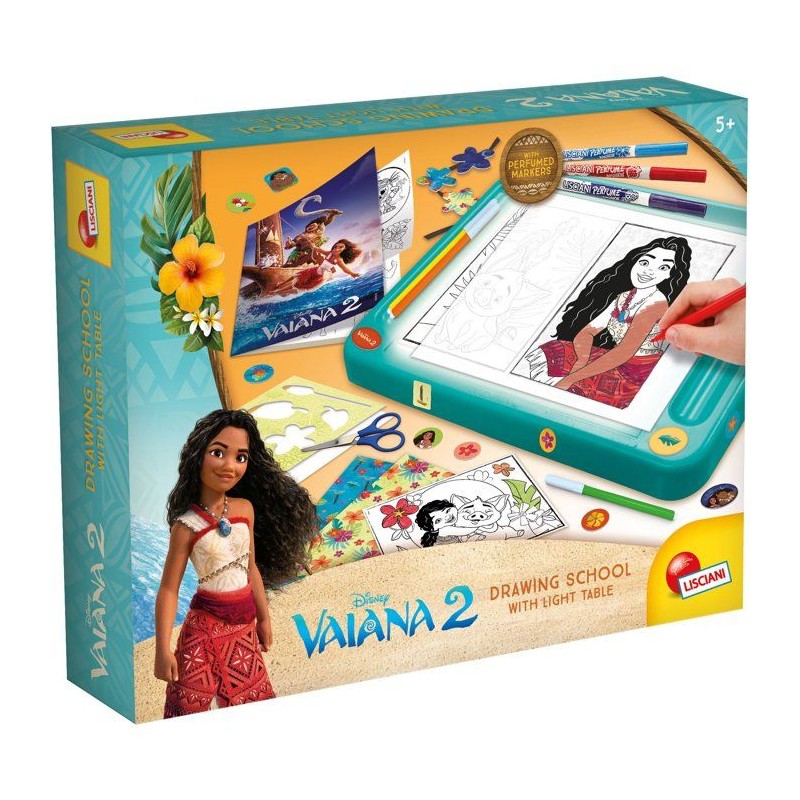 École de dessins avec table lumineuse - Vaiana 2 - LISCIANIGIOCHI - Kit Dessin - Table A4 - Pochoirs & Autocollants - Des 5 ans
