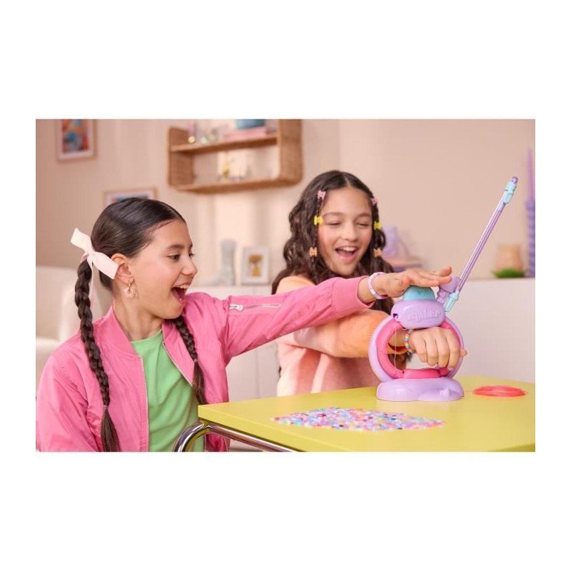 Cet atelier a bracelets Heishi permet de créer des bracelets d'amitié tendances en un tour de main. Il suffit de choisir ses perles colorées Heishi et de les empiler une a une grâce au stylo fourni. Dans le meme temps, placer l'élastique dans l'atelier a bracelets. Puis enfile les perles en un tour de main dans la machine pour finaliser ta création. Enfin, place ta main pour découvrir ton superbe bracelet Heishi ! Ce systeme permet d'adapter le bracelet a la longueur du poignet. Possibilité de réaliser jusqu'a 15 bracelets grâce aux 1220 perles, 17 fils et 16 fermoirs fournis. Avec livret comportant des idées de créations et regle pour mesurer les poignets. Boîte fermée. A partir de 7 ans.