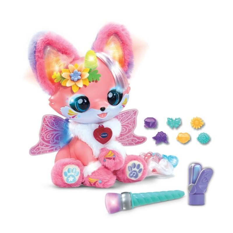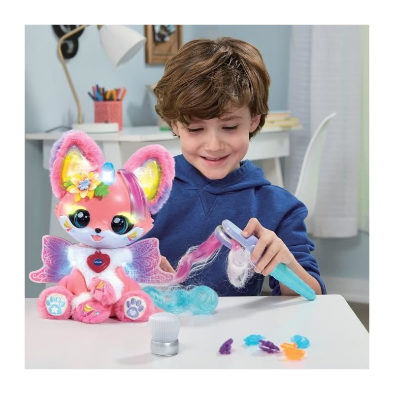 Lili Beauty - Coiffure et maquillage magiques - 4 ans + Une créature féérique a maquiller et a coiffer grâce aux accessoires magiques inclus ! Pour maquiller Lili, l'enfant choisit une couleur grâce au pinceau magique. Il l'applique sur la corne, les paupieres, les oreilles et les ailes pour les voir s'illuminer. -