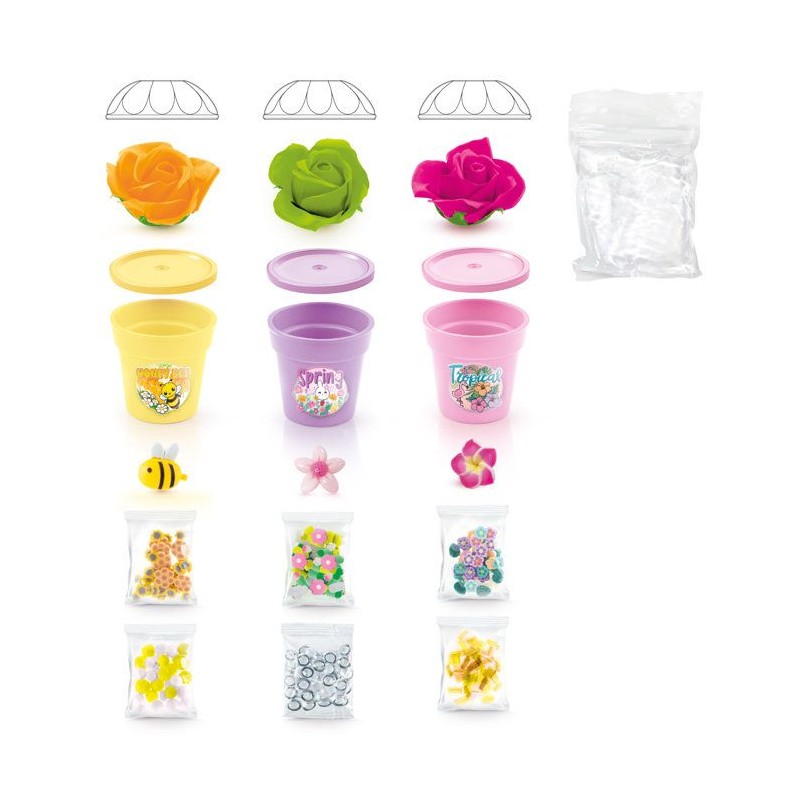 Mélange tes 3 fleurs a leurs slimes parfumées et personnalise-les avec des décorations et charms.