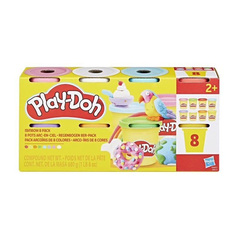 Play-Doh 8 couleurs arc-en-ciel, pots de pâte a modeler de 85 g