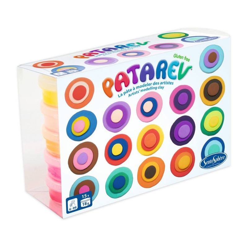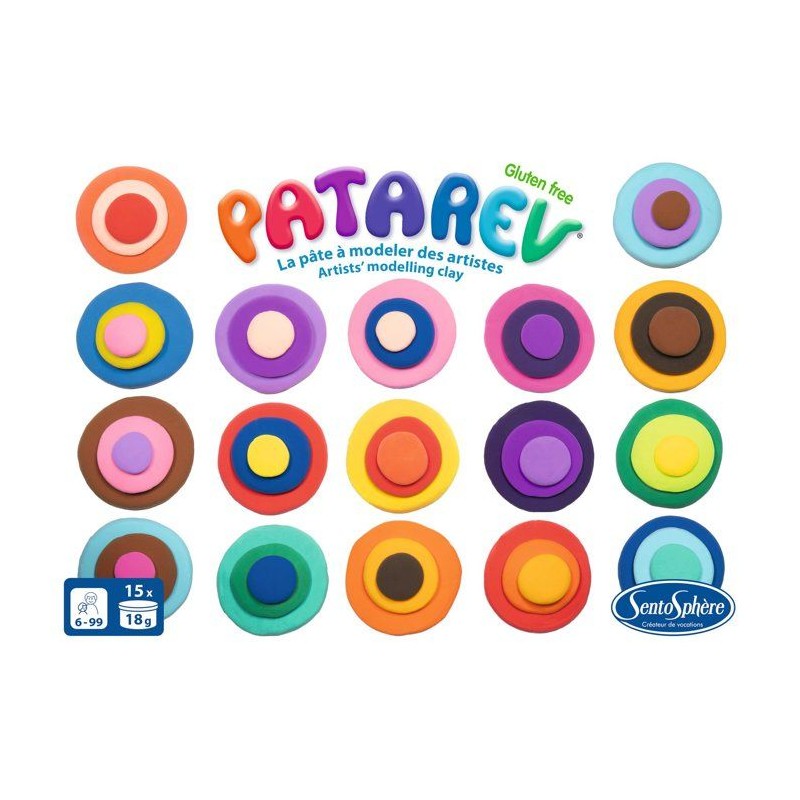 Pate a modeler autodurcissante - SENTOSPHERE - Patarev - Coffret 15 pots de 18g - Différentes Couleurs - Des 8 ans