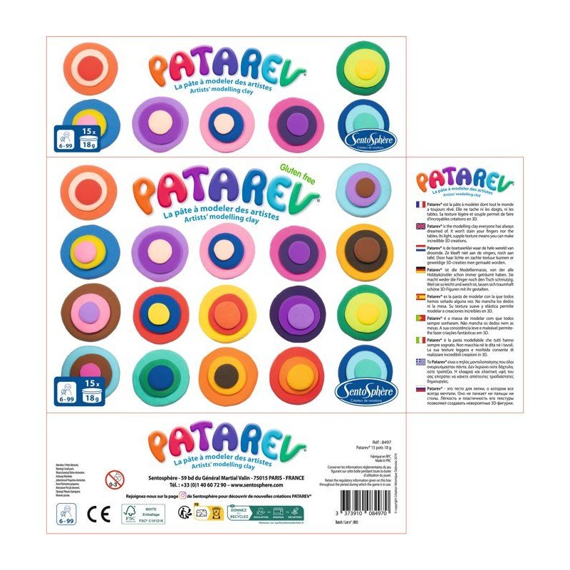 15 pots de Patarev de différentes couleurs qui peuvent se mélanger pour créer toutes les nuances de l'arc-en-ciel ! Les Fans de Patarev adoreront ce kit qui permet de profiter d'une large palette de couleurs pour modeler de jolies figurines dans une pâte autodurcissante a la texture étonnante . Un coffret pour inventer toutes les créations !
