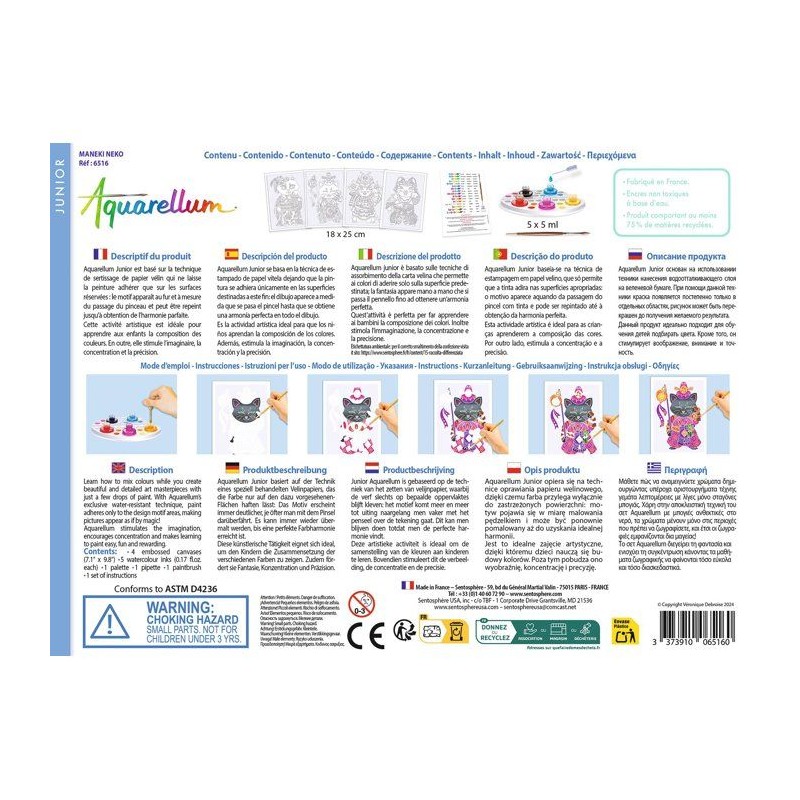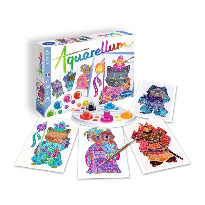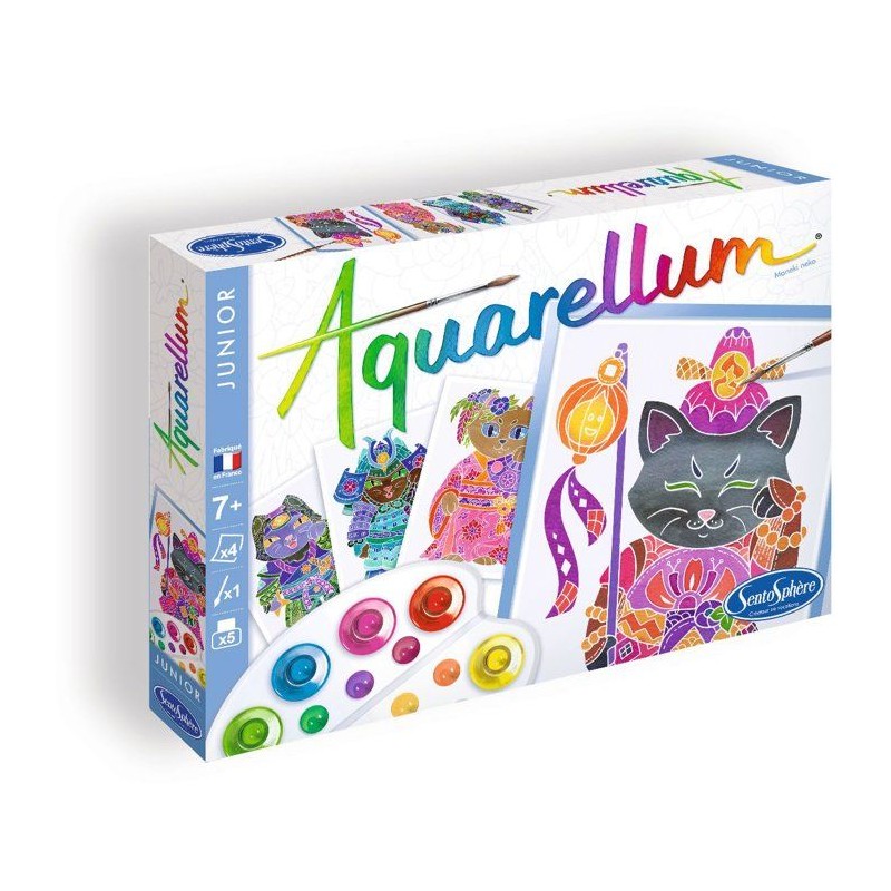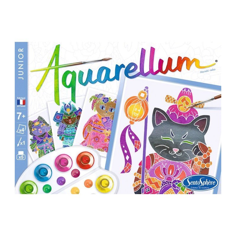 Peinture aquerelle - SENTOSPHERE - Aquarellum Junior - Maneki Neko - 5 couleurs - Sertissage sur papier Vélin - Des 6 ans