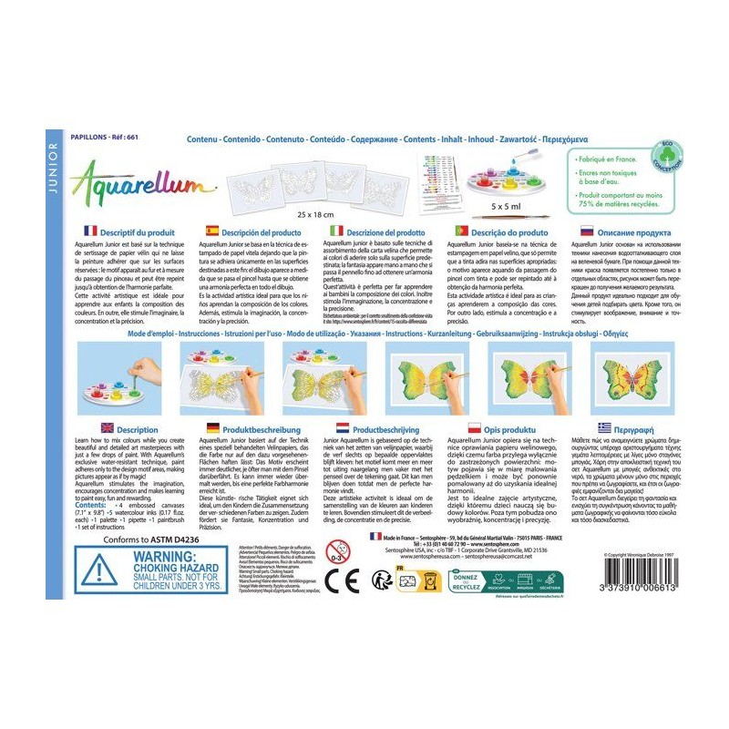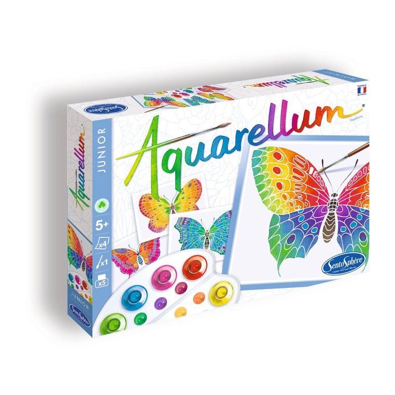 Peinture aquerelle - SENTOSPHERE - Aquarellum Junior - Papillons - 5 couleurs - Sertissage sur papier Vélin - Des 5 ans
