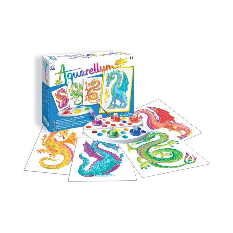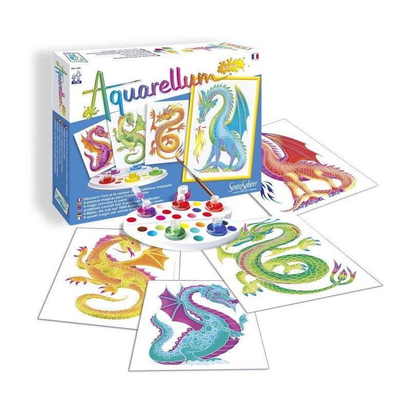 Peinture aquerelle - SENTOSPHERE - Aquarellum Junior - Dragons - 5 couleurs - Sertissage sur papier Vélin - Des 7 ans