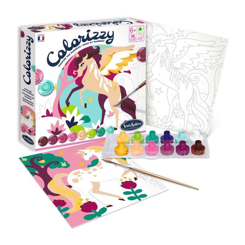 Peinture Acrylique - SENTOSPHERE - Colorizzy - Licornes - Peinture a numéro pour jeunes artistes - Des 8 ans