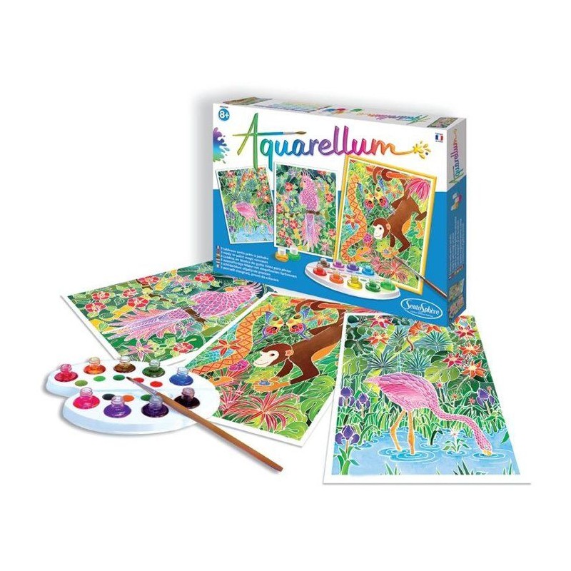 Peinture aquerelle - SENTOSPHERE - Aquarellum - Amazone - 9 couleurs - 3 tableaux - Sertissage sur papier Vélin - Des 7 ans