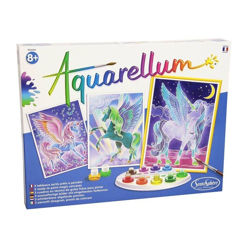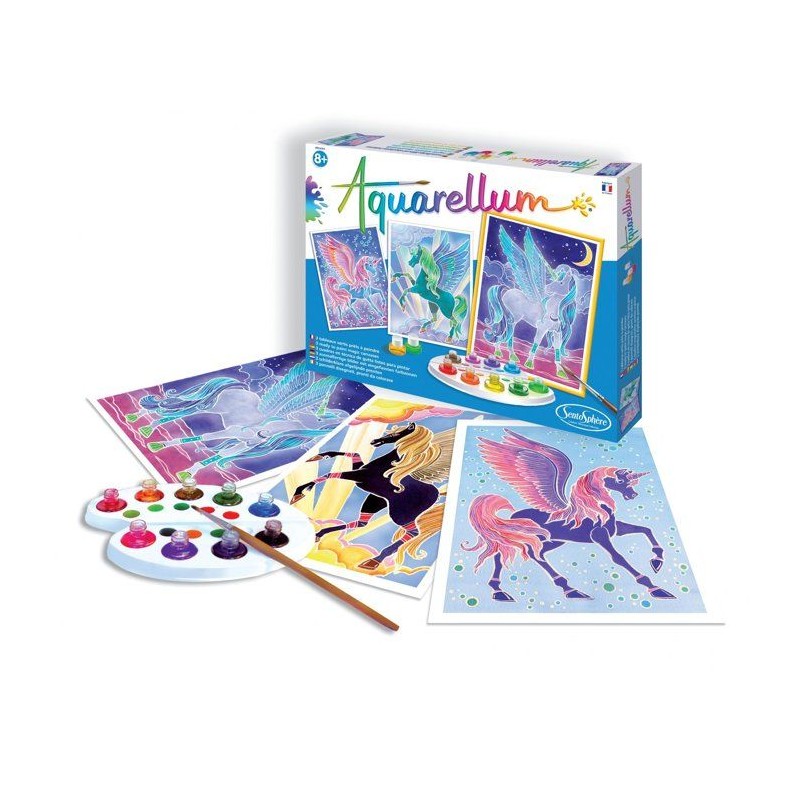 Peinture aquerelle - SENTOSPHERE - Aquarellum - Pégases - 9 couleurs - 3 tableaux - Sertissage sur papier Vélin - Des 7 ans