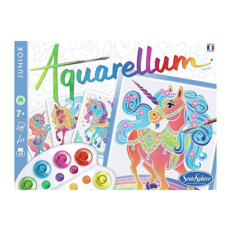 SENTOSPHERE Aquarellum Junior Unicorn Game - Based on a technique, created by Véronique Debroise, of crimping on vellum paper, which only allows the paint to adhere to reserved surfaces - Boy and Girl - From 8 years old - Delivered individually