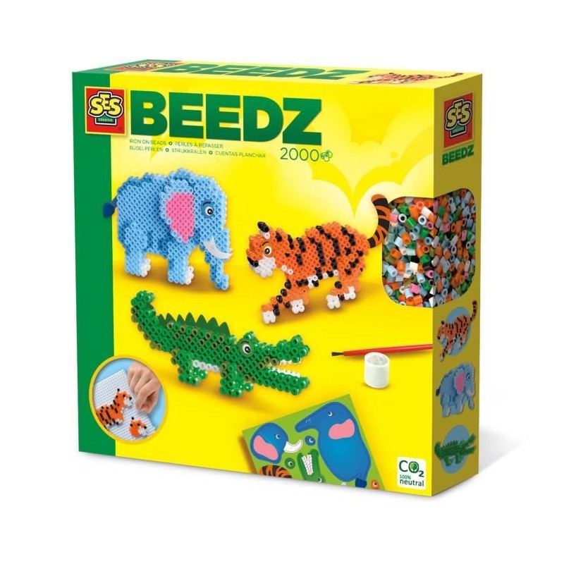 Perles a repasser - Animaux Safari - SES CREATIVE - Crée des animaux en 3D comme un éléphant, un tigre, ou un crocodile.