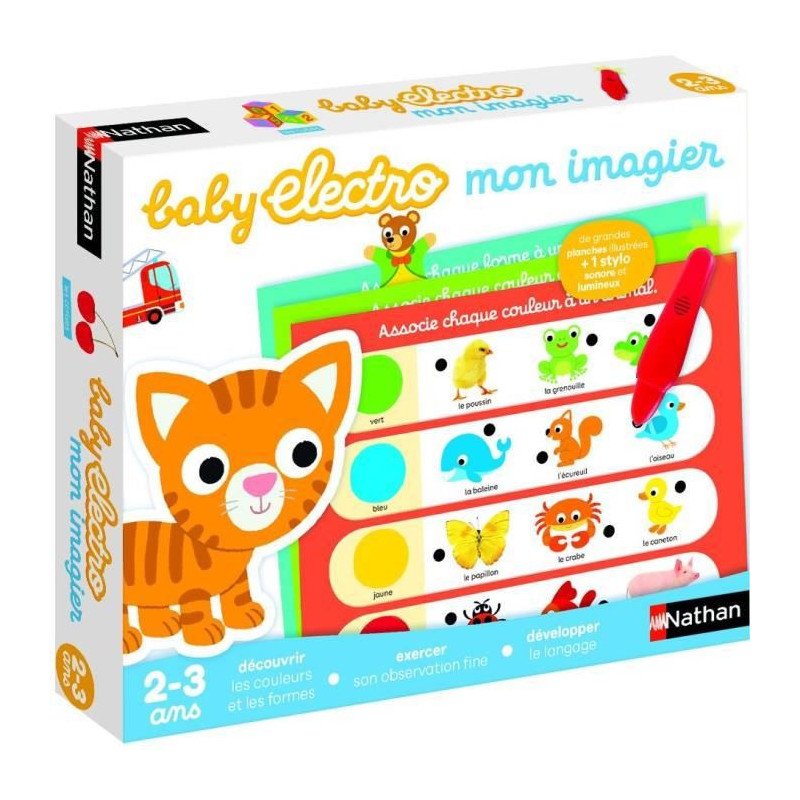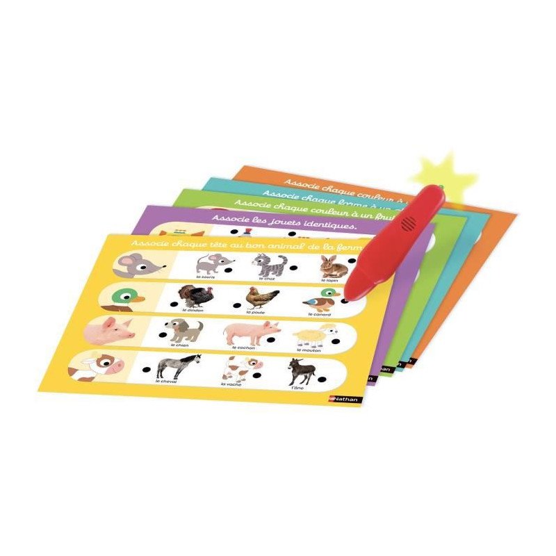 Un jeu électronique de questions-réponses sur les premieres notions d'apprentissage. Relie la question et la réponse avec la pointe du stylo. Si le stylo s'allume, bravo! La réponse est bonne. Un jeu éducatif pour apprendre en s'amusant.