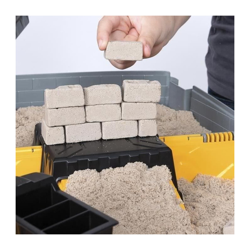 Le seul sable qui ne seche pas et ne s'émiette pas pour des créations plus solides et tout en couleurs. Elaboré a partir de sable naturel. Mode de jeu ouvert pour des créations sans limites ! Une mallette a emporter partout et servant de bac pour réaliser ses créations en se créant son propre chantier. Les enfants peuvent s'amuser a construire, creuser et démolir grâce a ce coffret comprenant plus de 907 gramme