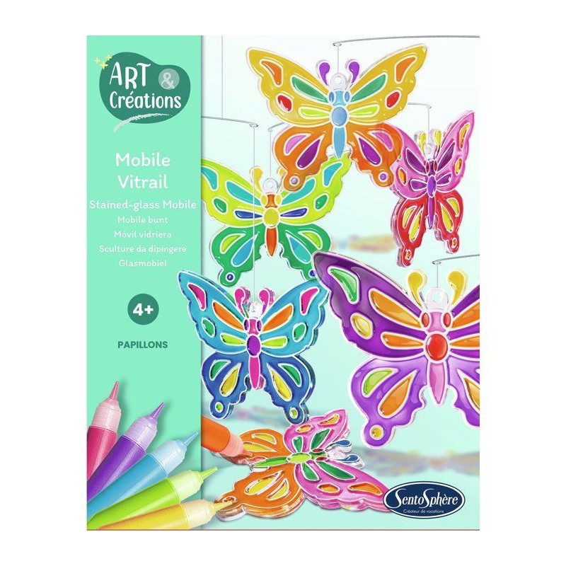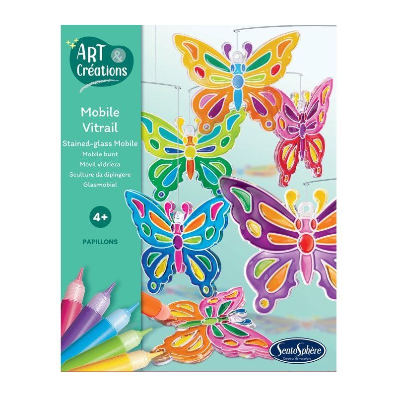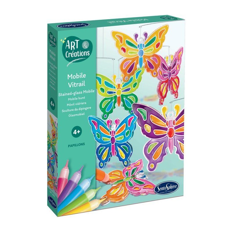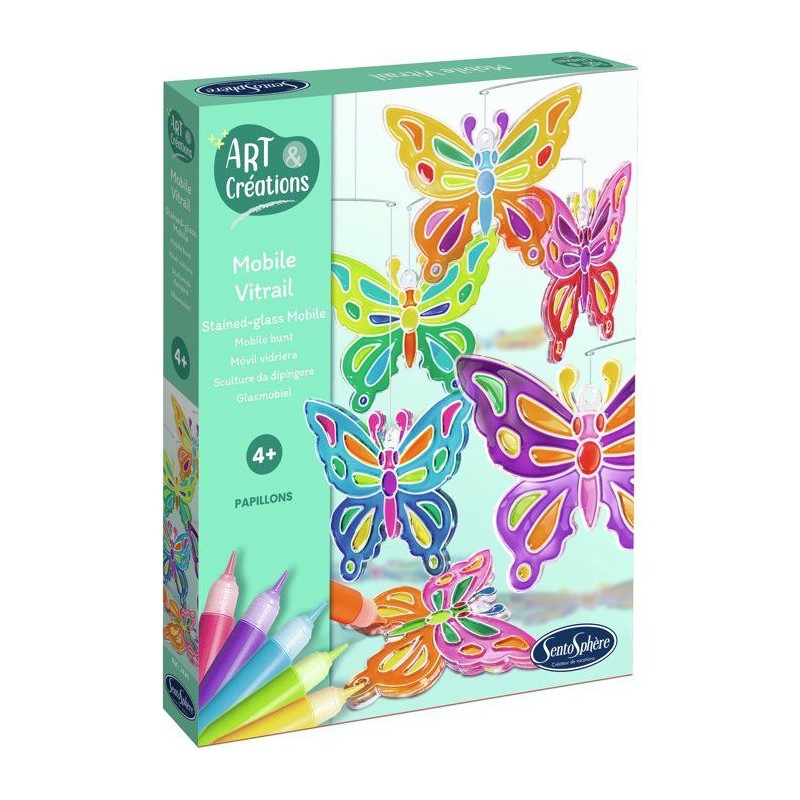 Art & Créations Mobile Vitrail - SENTOSPHERE - Papillons - Activité Créative facile et utile pour décoration - Des 4 ans