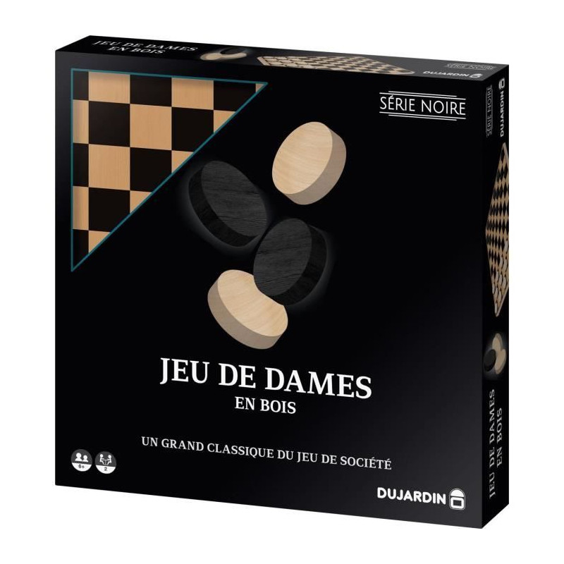 Découvrez le jeu de dames de la série noire de DUJARDIN, un jeu de plateau classique pour 2 joueurs ou plus. Avec un damier de 100 cases et 20 pions par joueur, le but est de capturer ou bloquer les pions adverses. Idéal pour les enfants des 7 ans, ce jeu de stratégie promet des heures de divertissement en intérieur.