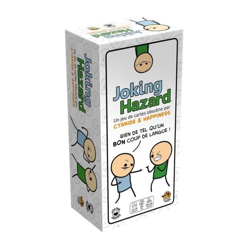JOKING HAZARD est le jeu de cartes irrévérencieux inspiré de la célebre BD Cyanide & Happiness. Créez des bandes dessinées hilarantes et choquantes en combinant les cartes pour former des strips en 3 vignettes. Avec des millions de combinaisons possibles, chaque partie est unique, déjantée et réservée aux adultes ! Un jeu d'ambiance parfait pour pimenter vos soirées entre amis. Attention : humour noir et situations absurdes garantis !