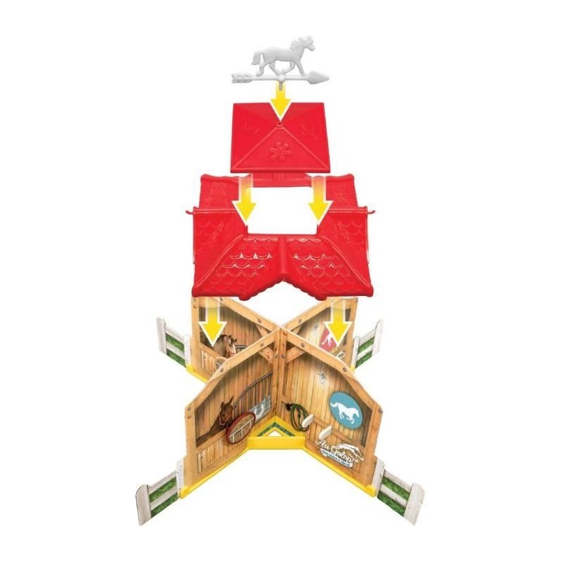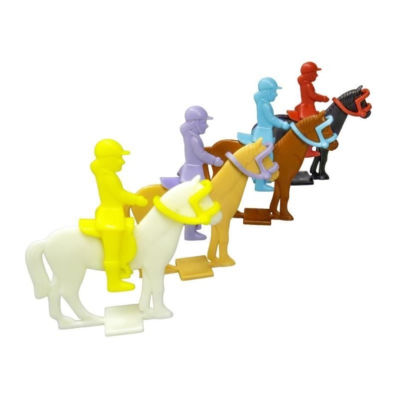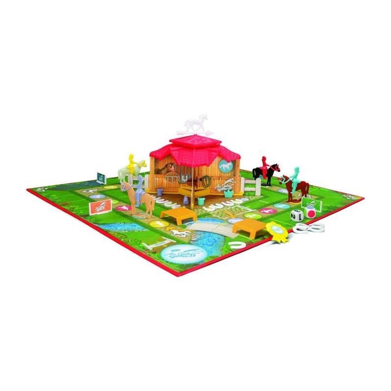 PRÉPARE TON CHEVAL, ENTRAÎNE-LE, GAGNE LA COURSE ! Embarque sur la premiere série-réalité équestre diffusée sur France TV et entraîne-toi pour gagner la course d'obstacles ! Mais auparavant, tu devras passer avec succes les trois épreuves du jeu ! Prépare ton cheval : a l'aide de la girouette sur le toit de l'écurie, réunis tes accessoires pour ton cheval : selle, bride, seau et brosse. Entraîne-le : avec le dé de couleurs, maîtrise les cinq allures de ta monture dans le manege (pas, trot, petit galop, grand galop et saut d'obstacles) et gagne des fers a cheval. - Participe a la course : sois le meilleur et le plus rapide pour franchir les obstacles, gagner la course et remporter la rosette ! Des heures d'amusement en perspective !