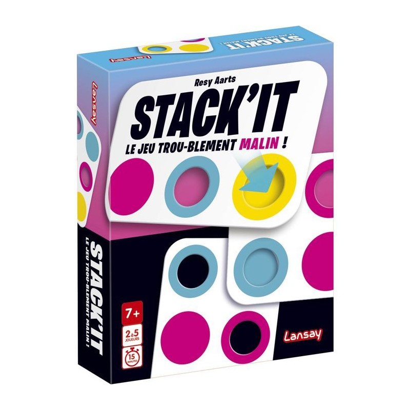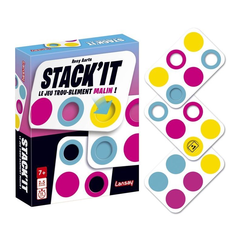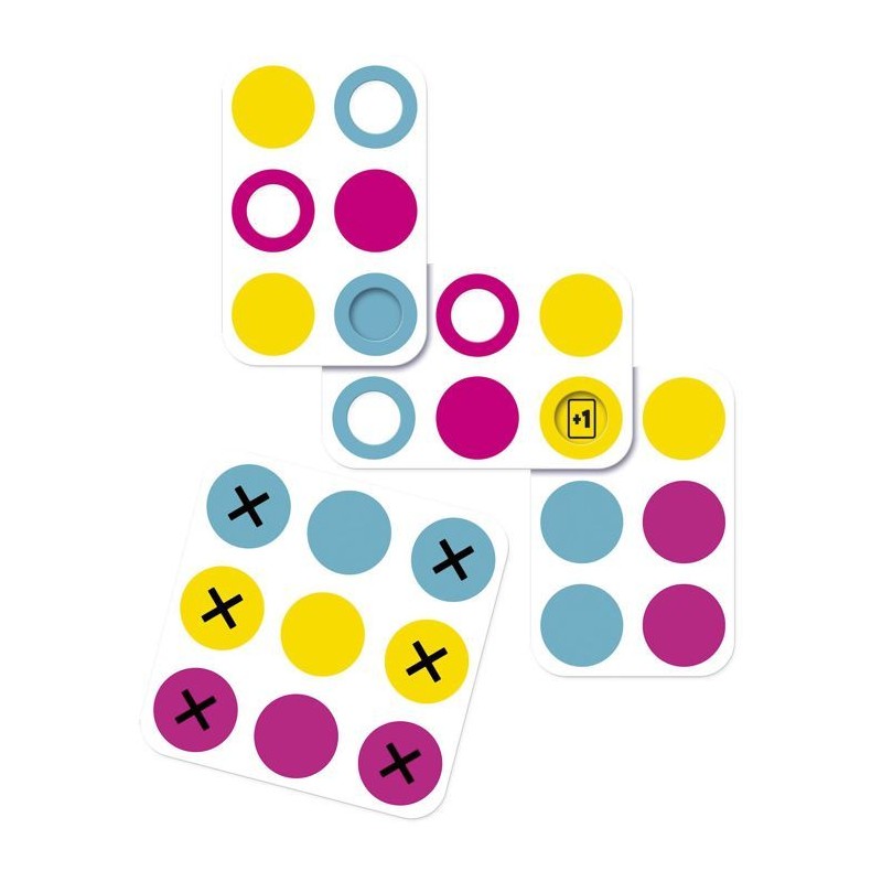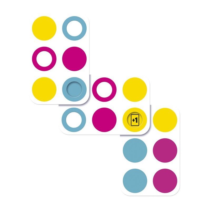 Le but est simple : sois le premier a te débarrasser de toutes tes cartes ! a ton tour, pose une carte sur la pile centrale... a condition que ses trous recouvrent les bonnes couleurs. Les cartes peuvent etre tournées dans tous les sens, mais si tu ne peux pas jouer, tu pioches ! Certaines cartes déclenchent des actions spéciales : échange, retournement ou pioche... a toi de les utiliser au bon moment. Un jeu facile a apprendre, mais diablement malin a maîtriser. Pour les petits et les grands cerveaux ! De 2 a 5 joueurs Des 7 ans