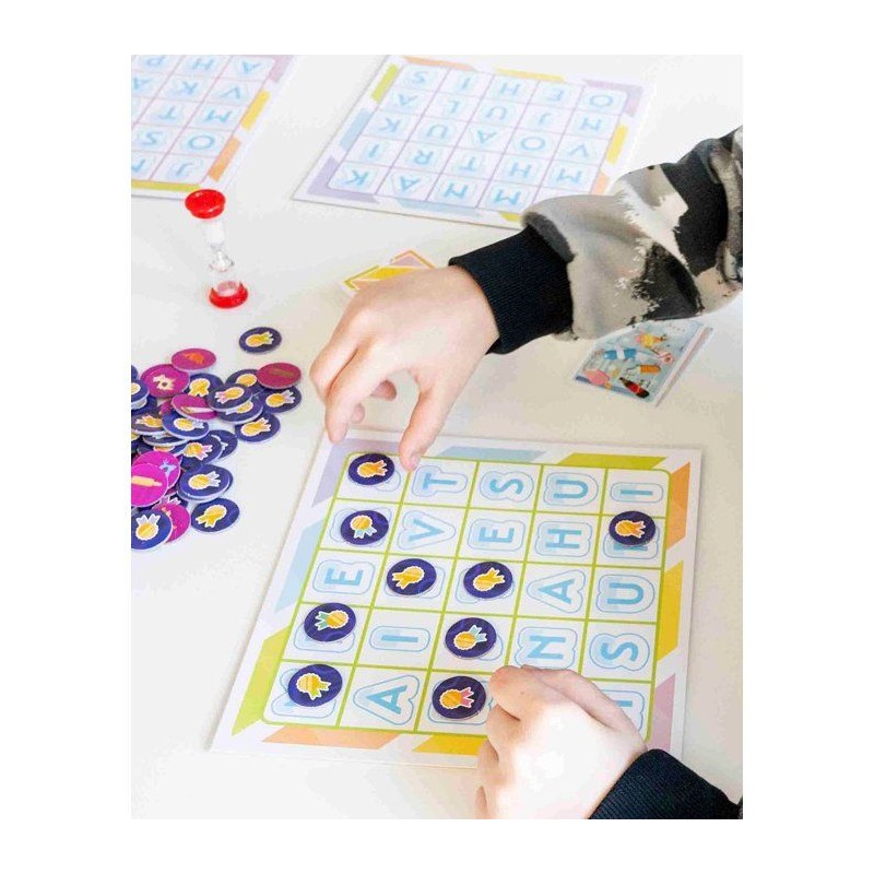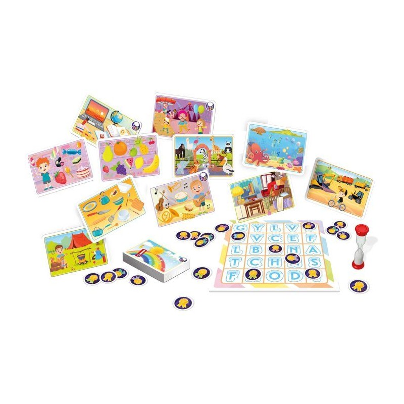 APPRENDRE PEUT eTRE AMUSANT ET SE FAIRE EN JOUANT ! Soyez le plus rapide pour trouver des mots avec des initiales différentes et pour ainsi récupérer des jetons sur vos plateaux Bingo. Le joueur avec la premiere rangée de cinq jetons remporte la partie ! Des cartes spéciales vont rendre le jeu encore plus excitant ! Vous aurez deux niveaux de jeu les enfants les plus jeunes joueront avec des plateaux avec des images. Le jeu comprend aussi des conseils sur la maniere de trier les mots pour développer le vocabulaire et les compétences de réflexion.