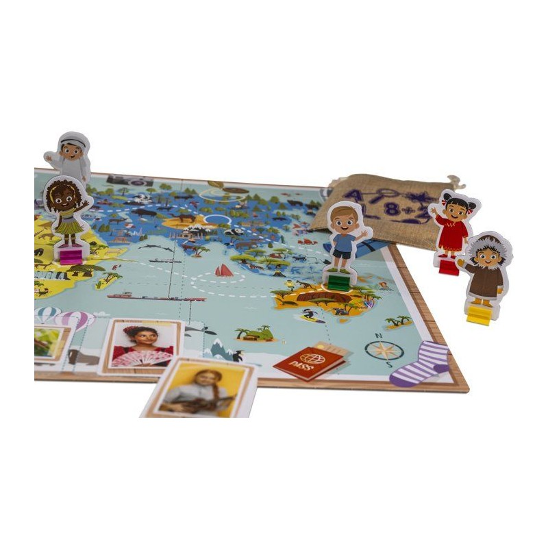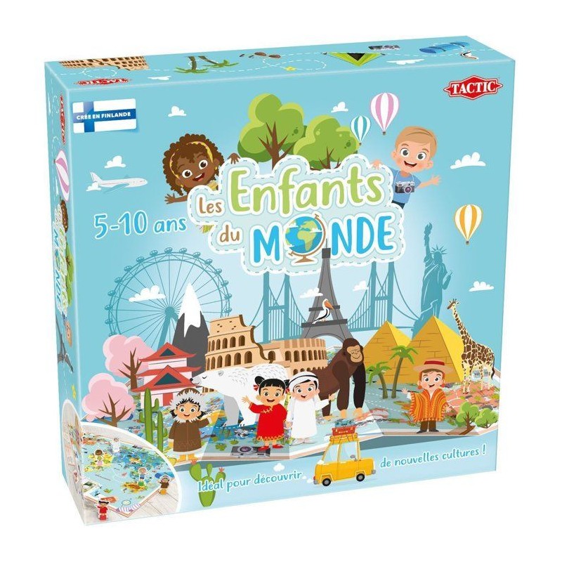 Enfants du Monde, c'est parti pour l'aventure ! Et n'oublie pas de mettre dans ta valise des sourires et beaucoup de curiosité ! Enfants du Monde est une grande fenetre colorée ouverte sur le monde et ses différentes cultures. Les joueurs jouent ensemble, se déplacent sur le plateau et accomplissent des actions rigolotes afin de collecter des tampons pour leur passeport. Apprenez-en plus sur ce qui lie tous les enfants du monde, mais aussi sur ce qui nous rend tous uniques ! Ce produit est fabriqué en Finlande dans notre propre usine TACTIC. Cette maîtrise de notre outil de production nous permet une entiere traçabilité des matériaux que nous utilisons et la maîtrise de notre empreinte carbone. Nous avons la certification FSC depuis 2021 sur la fabrication de nos produits.
