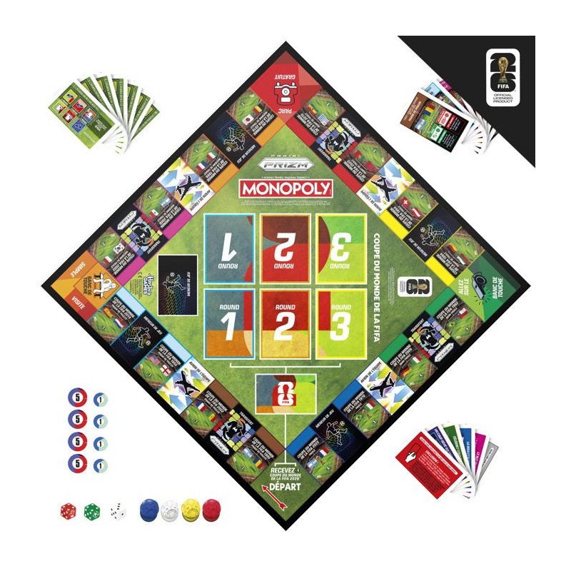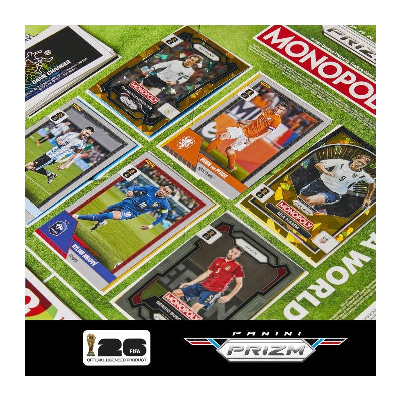 Monopoly Panini Prizm : FIFA World Cup jeu de football avec cartes Monopoly Panini Prizm Coupe du monde de la FIFA 2026, jeu de société, des 8 ans