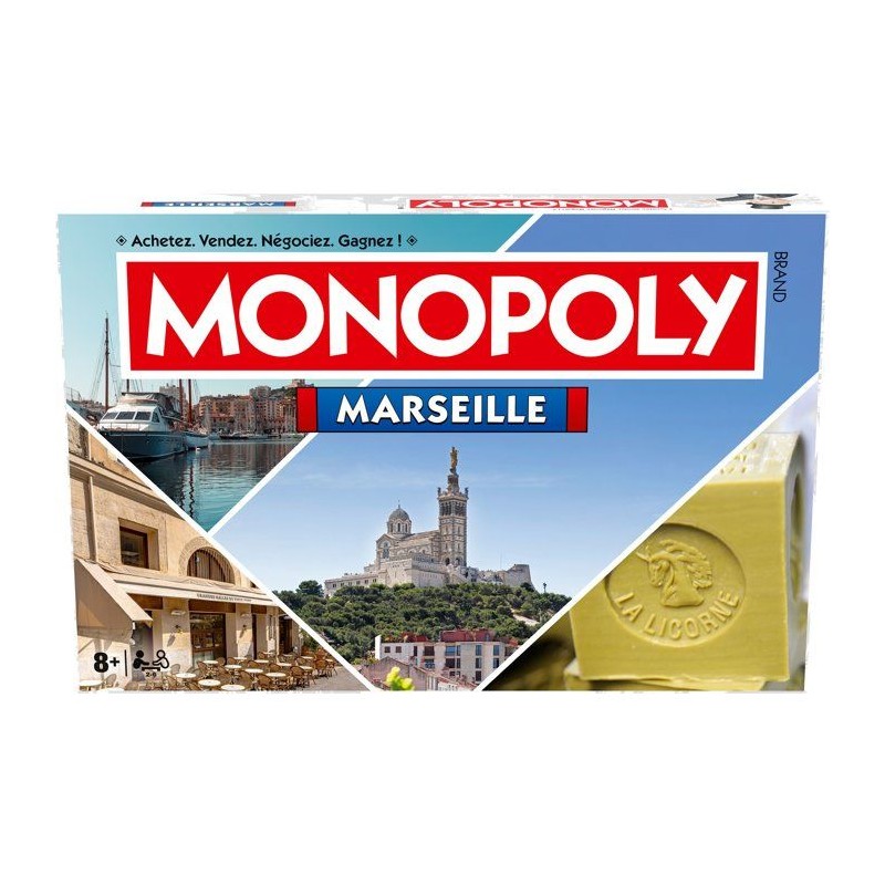Plongez au coeur de la cité phocéenne avec cette édition Monopoly Marseille ! Explorez ses quartiers emblématiques, négociez habilement, remportez les encheres et construisez votre empire dans une ville chargée d'histoire et de caractere. Du Vieux-Port a Notre-Dame-de-la-Garde, chaque case vous invite a découvrir Marseille autrement. Un jeu stratégique et convivial des 8 ans !