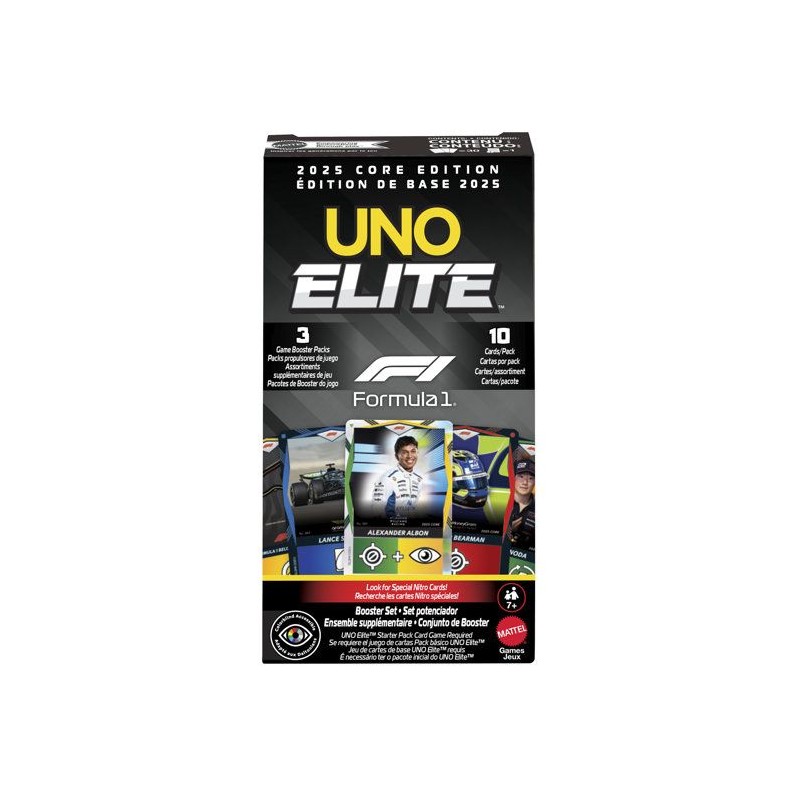 Des cartes UNO a collectionner et a jouer a l'effigie des 10 écuries de Formule 1 : pilotes, voitures ... Contenu : 3 boosters de 10 cartes Elite Action.