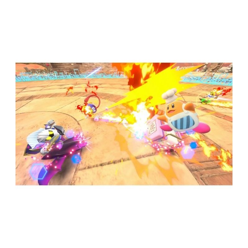 a vous les combats vitesse grand V ! Kirby Air Riders offre une expérience débordant de vitesse et d'action qui vous emmene a travers les terres, les eaux et les airs aux commandes de bolides pilotés par Kirby et ses amis (ou ennemis). Développé et amélioré a partir de Kirby Air Ride, le titre d'origine sorti en 2004 en Europe sur Nintendo GameCube, ce tout nouveau jeu offre entre autres une plus grande sélection de riders, chacun possédant des caractéristiques et des pouvoirs qui lui sont propres. Il y a aussi de nouveaux bolides Air Rider, de nouveaux coups spéciaux, et des modes de jeu font leur retour. Dirigé par Masahiro Sakurai, Kirby Air Riders est un jeu de course débridé signé Sora Ltd. et Bandai Namco Studios, Inc pour Nintendo Switch 2.