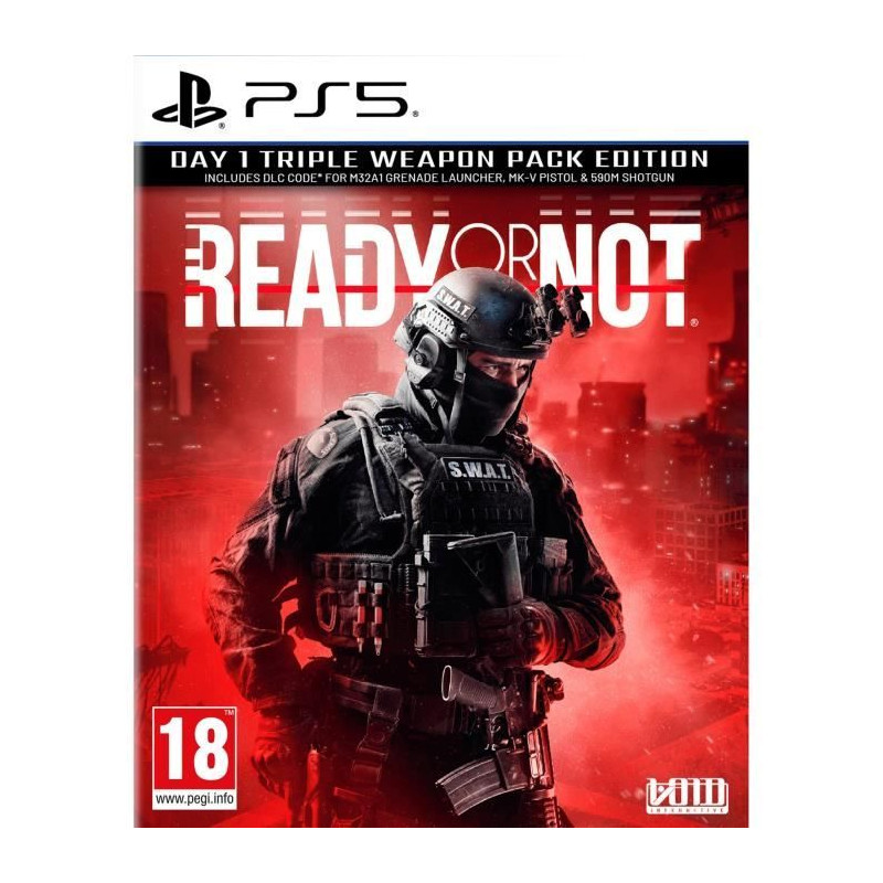 Découvrez Ready or Not - Day One Edition sur PS5, un jeu de tir tactique où vous devez faire preuve de réflexes, de stratégie et de sang-froid pour mener votre unité d'élite a la victoire. Disponible en version Blu-Ray, ce jeu est classé PEGI 18+.