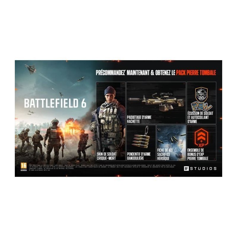 Plongez au coeur d'un conflit mondial d'une intensité inégalée avec Battlefield 6, le nouveau chapitre explosif de la franchise culte développée par DICE et les studios EA. Dans un futur proche, une organisation paramilitaire nommée Pax Armata menace la stabilité géopolitique mondiale. Le monde bascule dans une guerre totale, et vous en etes l'un des acteurs clés. Battlefield 6 signe un retour aux sources avec la réintégration du systeme de classes emblématique : assaut, ingénieur, médecin et soutien. Chaque classe possede ses propres armes, gadgets et compétences pour renforcer la complémentarité des escouades et la stratégie collective. Le gameplay a été entierement repensé pour favoriser la coordination, la mobilité et l'impact tactique de chaque action. Les champs de bataille évoluent en temps réel, avec une destruction massive des environnements : bâtiments qui s'effondrent, ponts qui explosent, infrastructures stratégiques modifiables. Chaque partie est unique grâce a des cartes a grande échelle, une météo dynamique et des événements scénarisés. Le mode multijoueur accueille jusqu'a 128 joueurs sur consoles nouvelle génération et PC, pour des affrontements spectaculaires melant infanterie, véhicules terrestres, aériens et maritimes. Battlefield 6 introduit également un systeme de progression enrichi, un matchmaking amélioré et des saisons post-lancement qui viendront étoffer l'univers du jeu.
