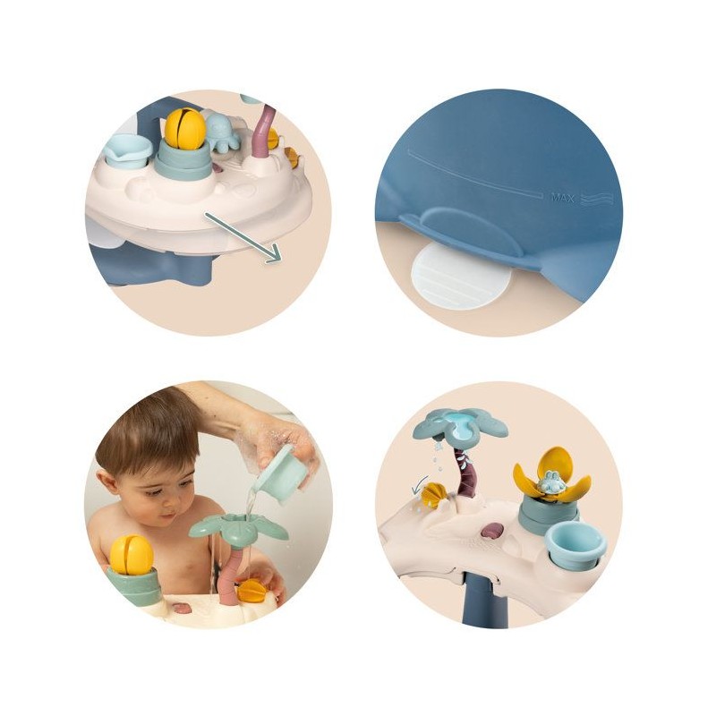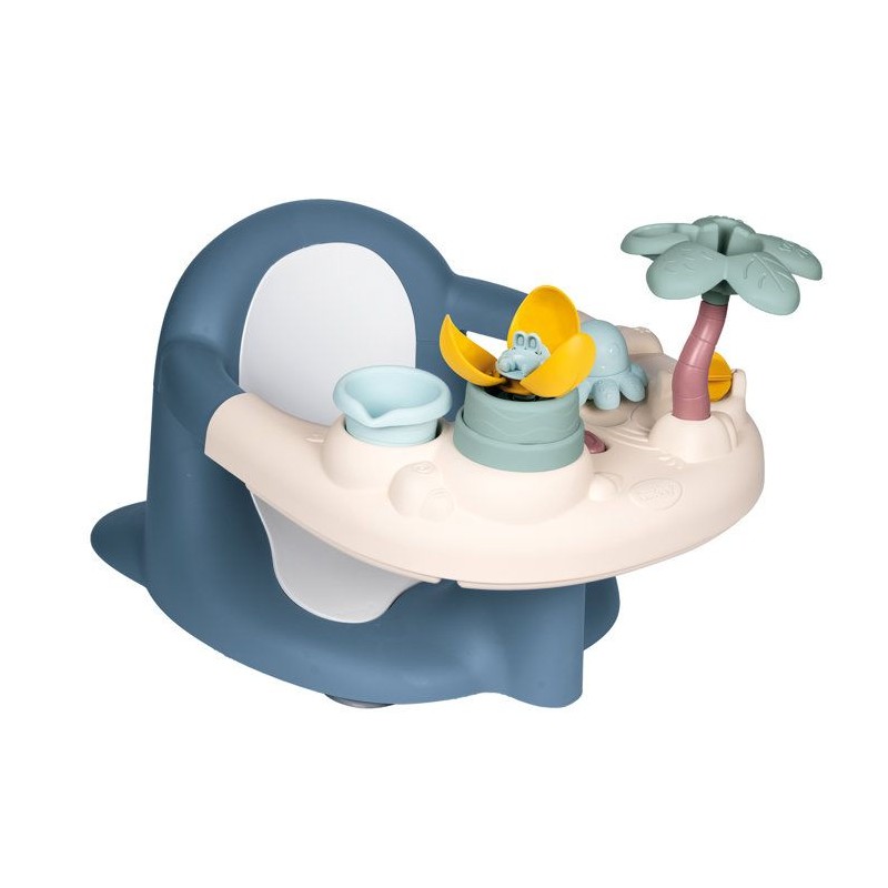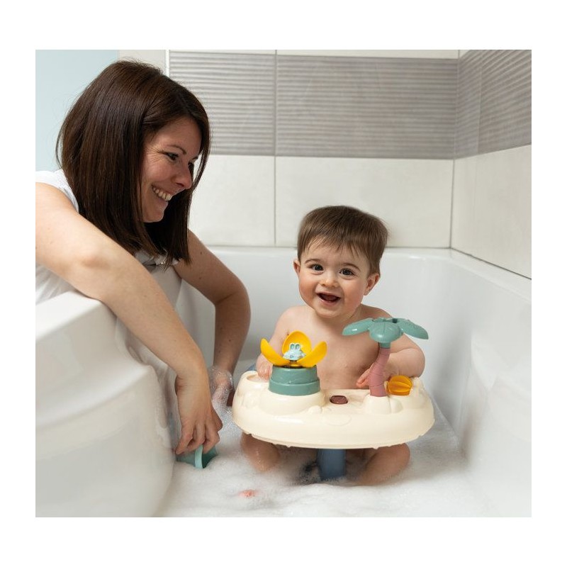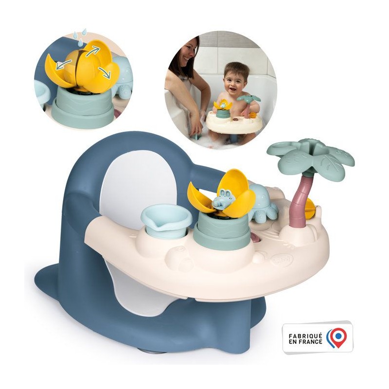 L'heure du bain sera un moment agréable avec le siege de bain pour bébé Little Smoby ! Des ses 6 mois, bébé pourra etre confortablement installé dans son siege. Vous pourrez alors le laver en toute sécurité pendant qu'il s'amusera a jouer dans l'eau ! Pour cela, il suffit de fixer le siege sur une surface lisse, grâce aux ventouses incluses. Le bébé va s'amuser avec la tablette munie de plusieurs activités ludiques et drôles : 1 roue a aube, 1 gobelet, 1 palmier arroseur, 1 fleur magique et 1 poulpe percé. Il développera sa curiosité et sa coordination le tout sous votre surveillance rapprochée ! Une fois le bain terminé, vous pourrez sortir aisément l'enfant du siege grâce au systeme de bouton avec double action permettant de faire coulisser la tablette. Il vous sera ensuite facile de retirer le siege de la baignoire grâce au systeme de déclipsage des ventouses. Il vous sera ensuite facile de retirer le siege de la baignoire grâce au systeme de déclipsage des ventouses. Cet anneau de bain facule a utiliser, deviendra vite un indispensable dans votre vie quotidienne ! A partir de 6 mois - Fabrication française.