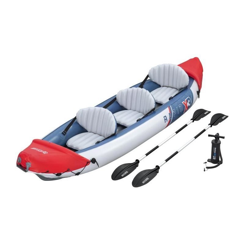 Kayak gonflable - BESTWAY - 65132 - Rapide X3 Hydro-Force™ - 381 x 100 cm, 3 places, 250 kg max, 2 pagaies, pompe