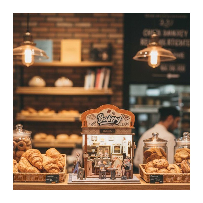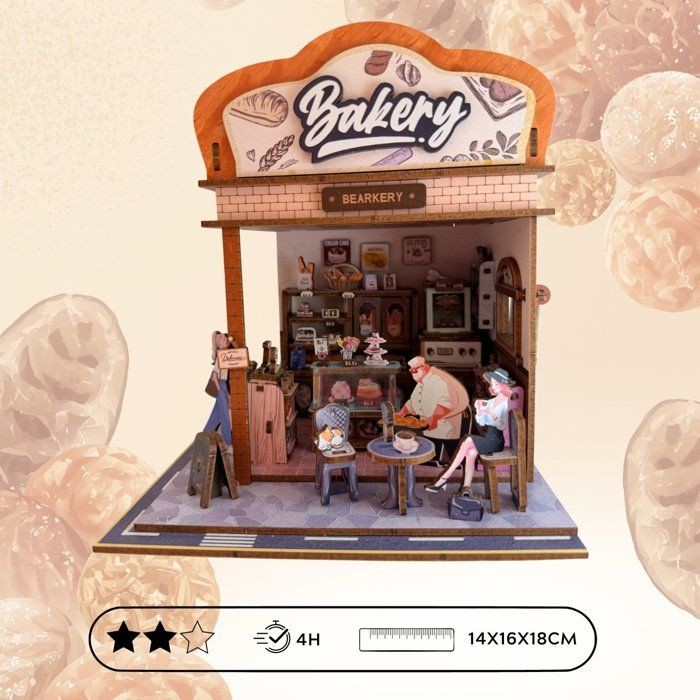 Book Nook - Kit DIY a construire Maquette 3D Serre Livre - Mini boulangerie Nookland - 14 x 16 x 26,5 cm