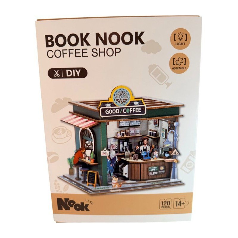 Book Nook - Kit DIY a construire Maquette 3D Serre Livre - Coffee Shop Nookland - 16 x 14 x 16 cm