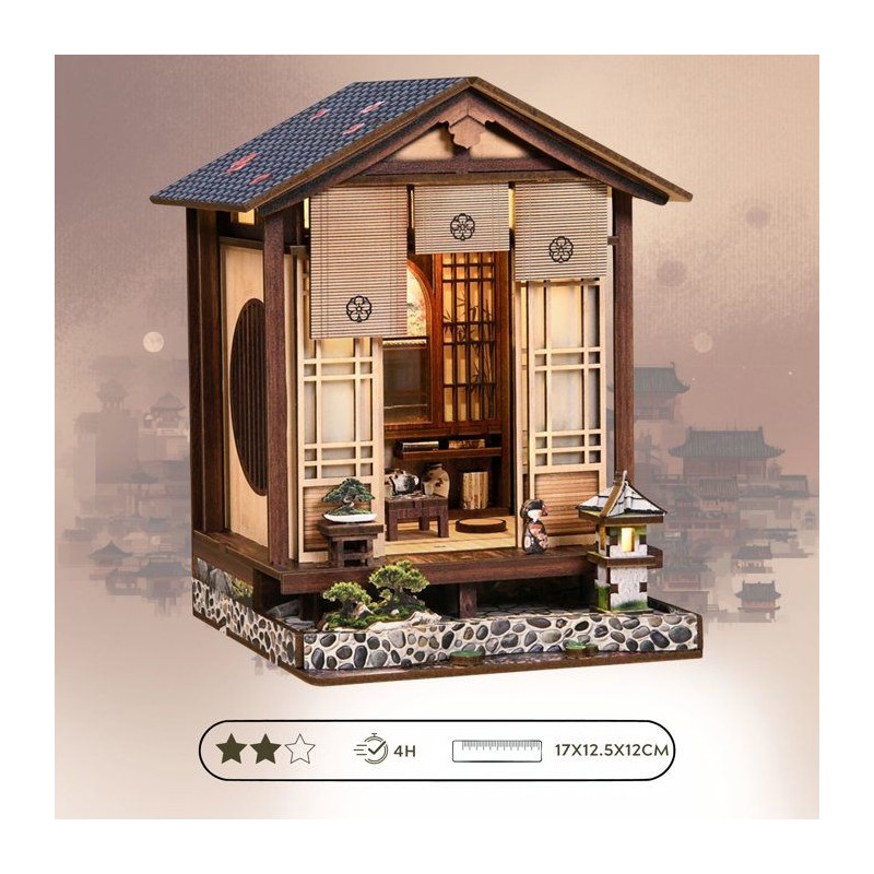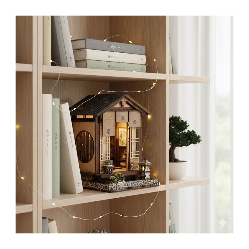 Zen House capture l'harmonie japonaise. Son toit traditionnel, ses lanternes delicates et son jardin zen installent une atmosphere apaisante, ideale pour accompagner un moment de lecture.